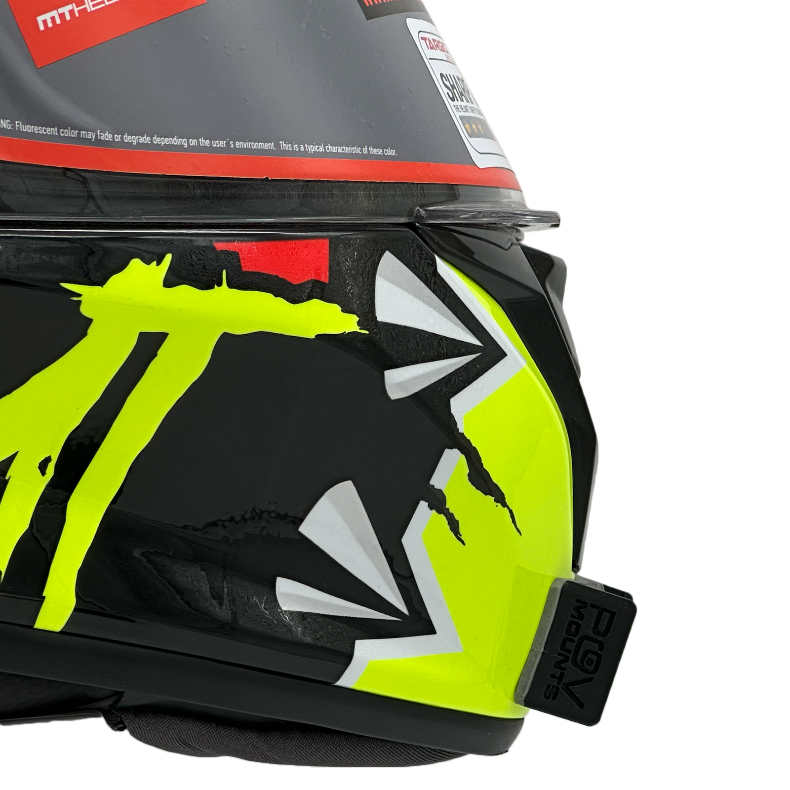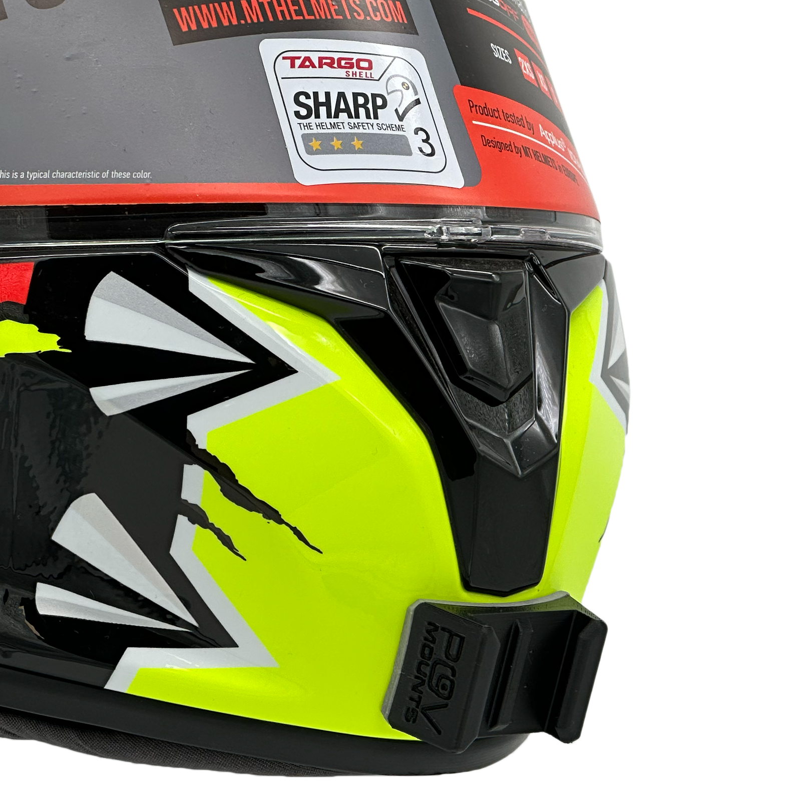 Nella confezione troverai il tuo POV Mount, ovviamente già dotato di biadesivo 3M, lo stesso che trovi montato sugli accessori GoPro, Insta360 e simili. Nel packaging, inoltre, sono incluse delle salviettine per pulire correttamente il casco, oltre ad una cordicella di sicurezza per l'utilizzo in pista ove richiesto dal regolamento.