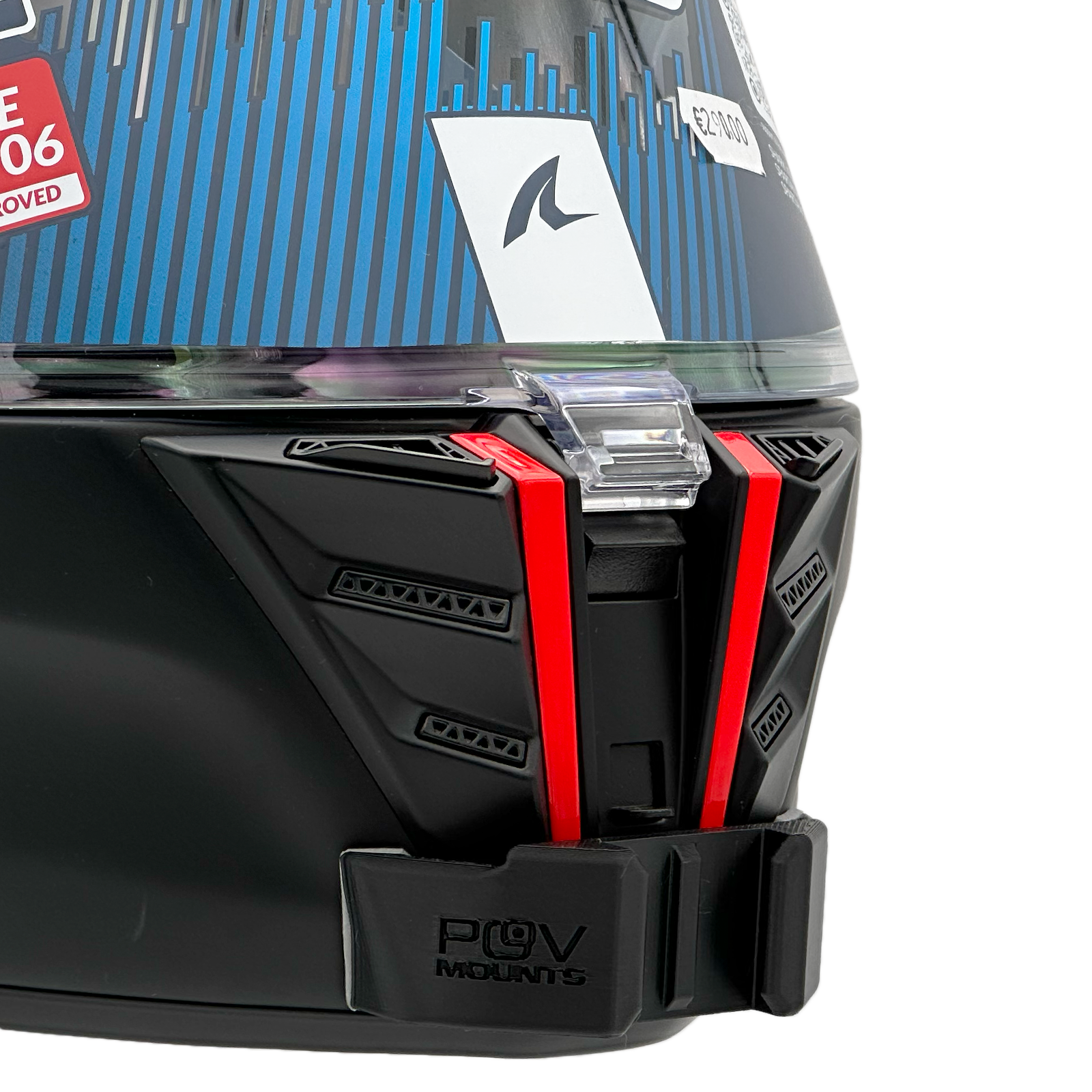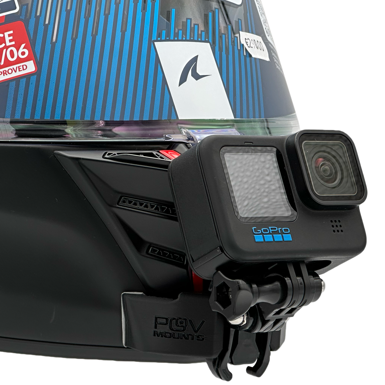 Nella confezione troverai il tuo POV Mount, ovviamente già dotato di biadesivo 3M, lo stesso che trovi montato sugli accessori GoPro, Insta360 e simili. Nel packaging, inoltre, sono incluse delle salviettine per pulire correttamente il casco, oltre ad una cordicella di sicurezza per l'utilizzo in pista ove richiesto dal regolamento.