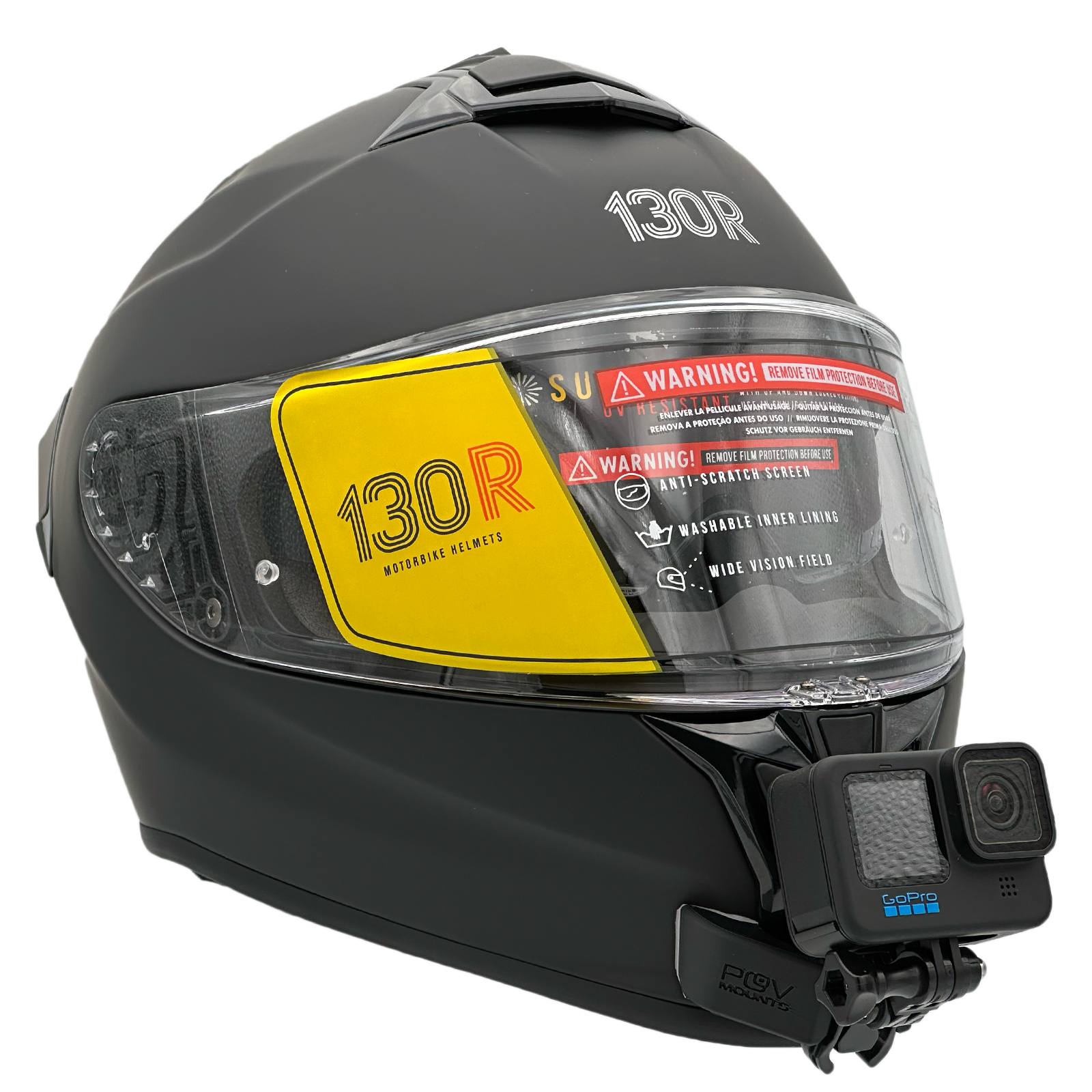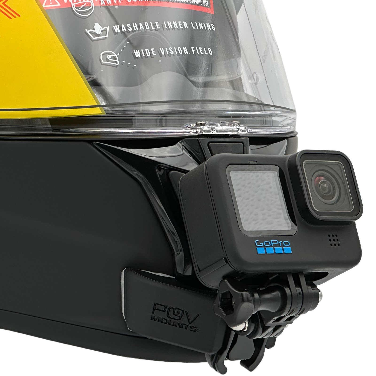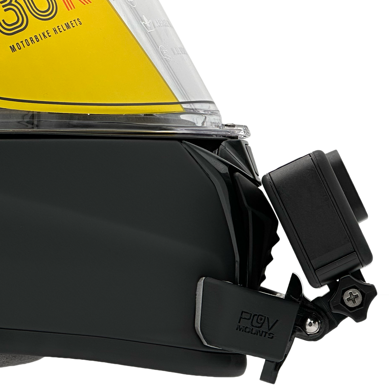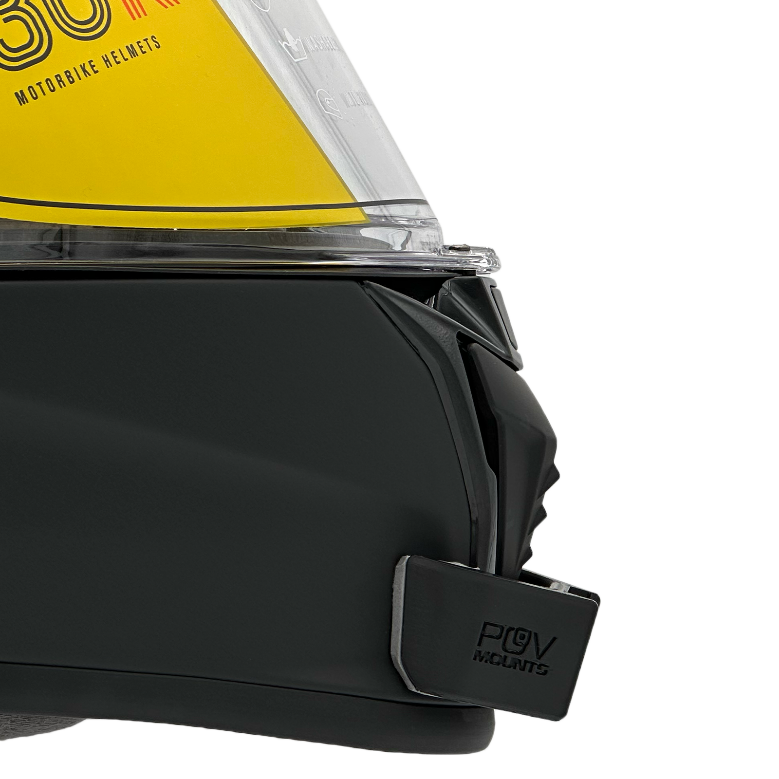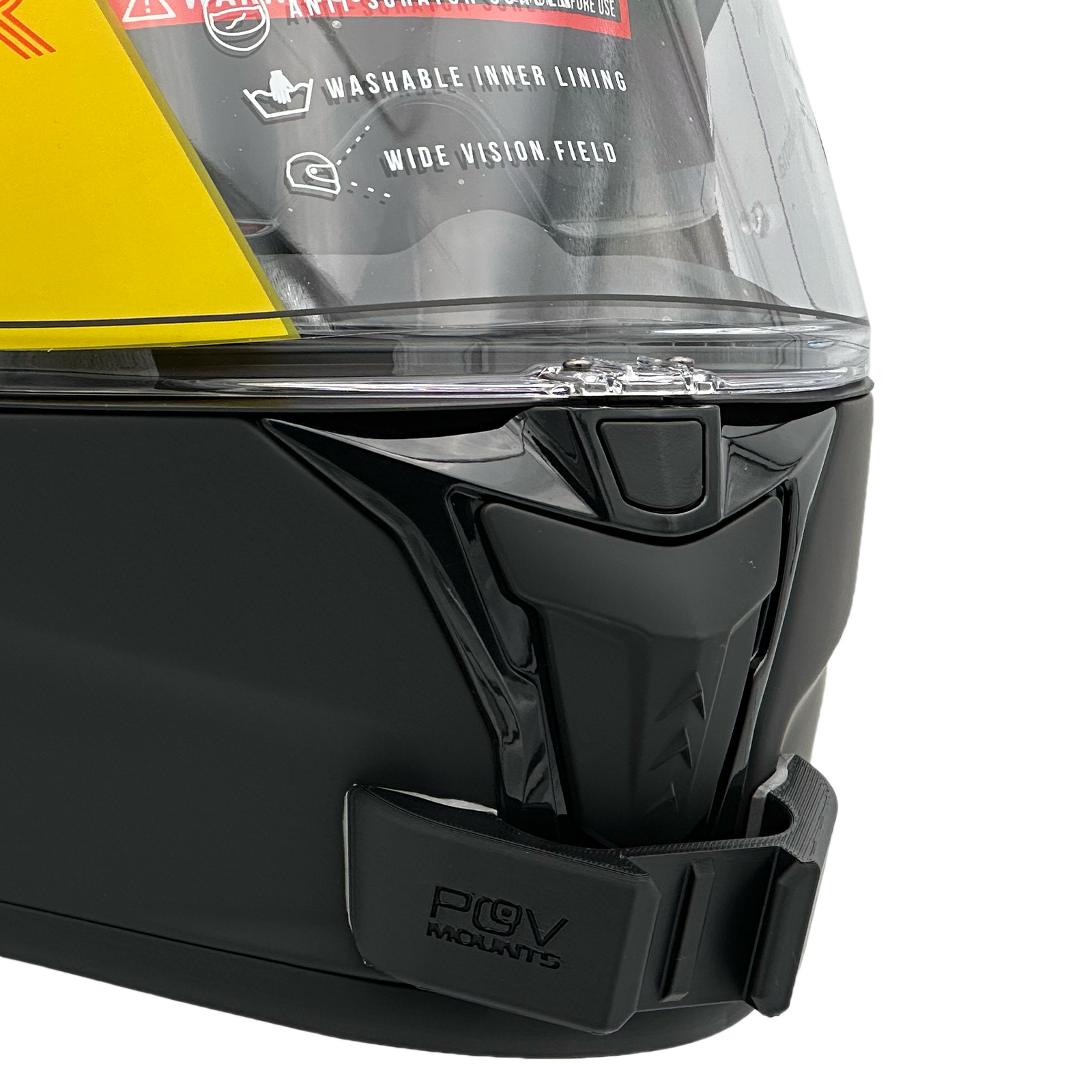 Inside the packaging you'll find your POV Mount, which naturally comes with 3M double-sided tape, the same type used on GoPro, Insta360, and similar accessories. The packaging also includes wipes to properly clean your helmet, along with a safety tether for track use where required by regulations.