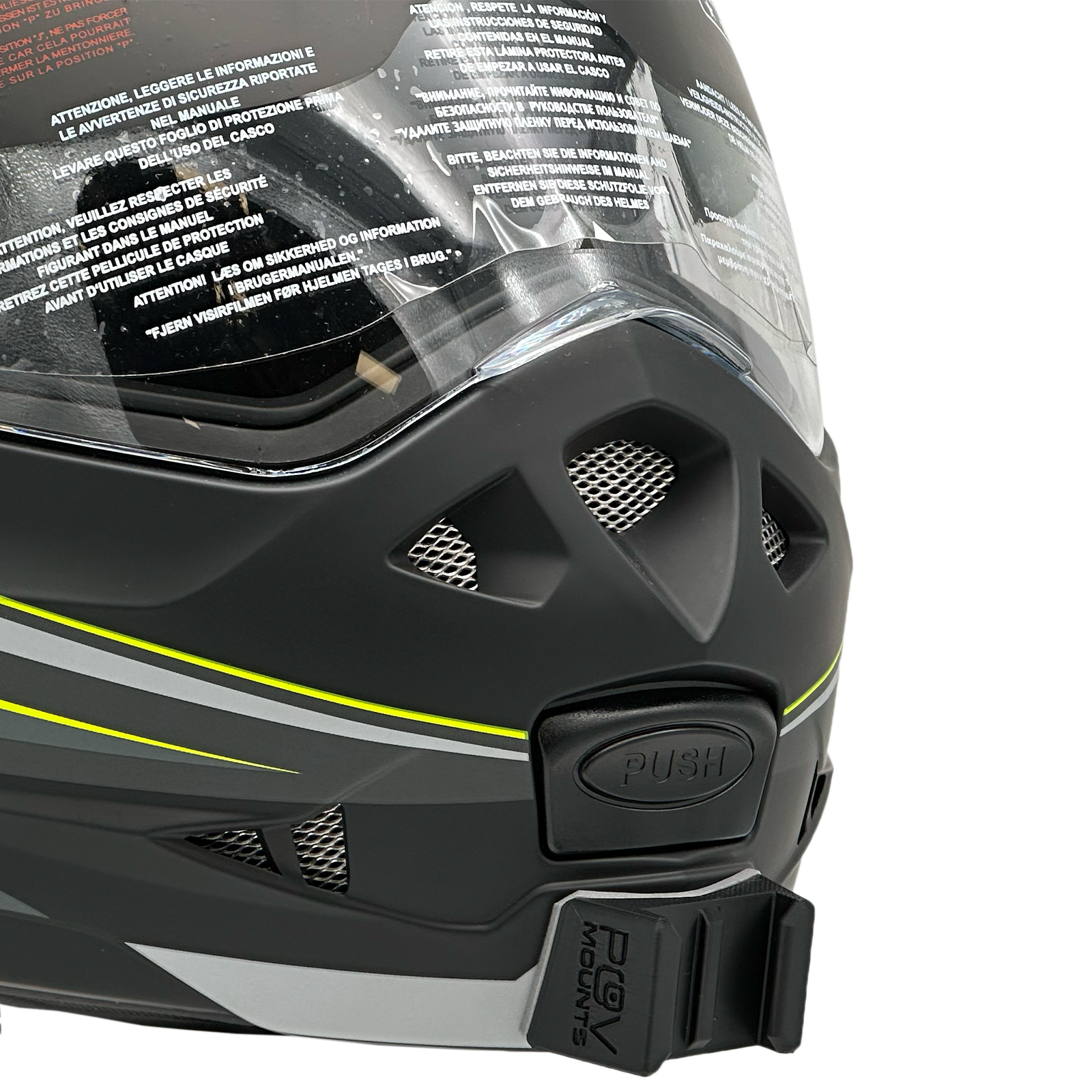 Inside the packaging you'll find your POV Mount, which naturally comes with 3M double-sided tape, the same type used on GoPro, Insta360, and similar accessories. The packaging also includes wipes to properly clean your helmet, along with a safety tether for track use where required by regulations.