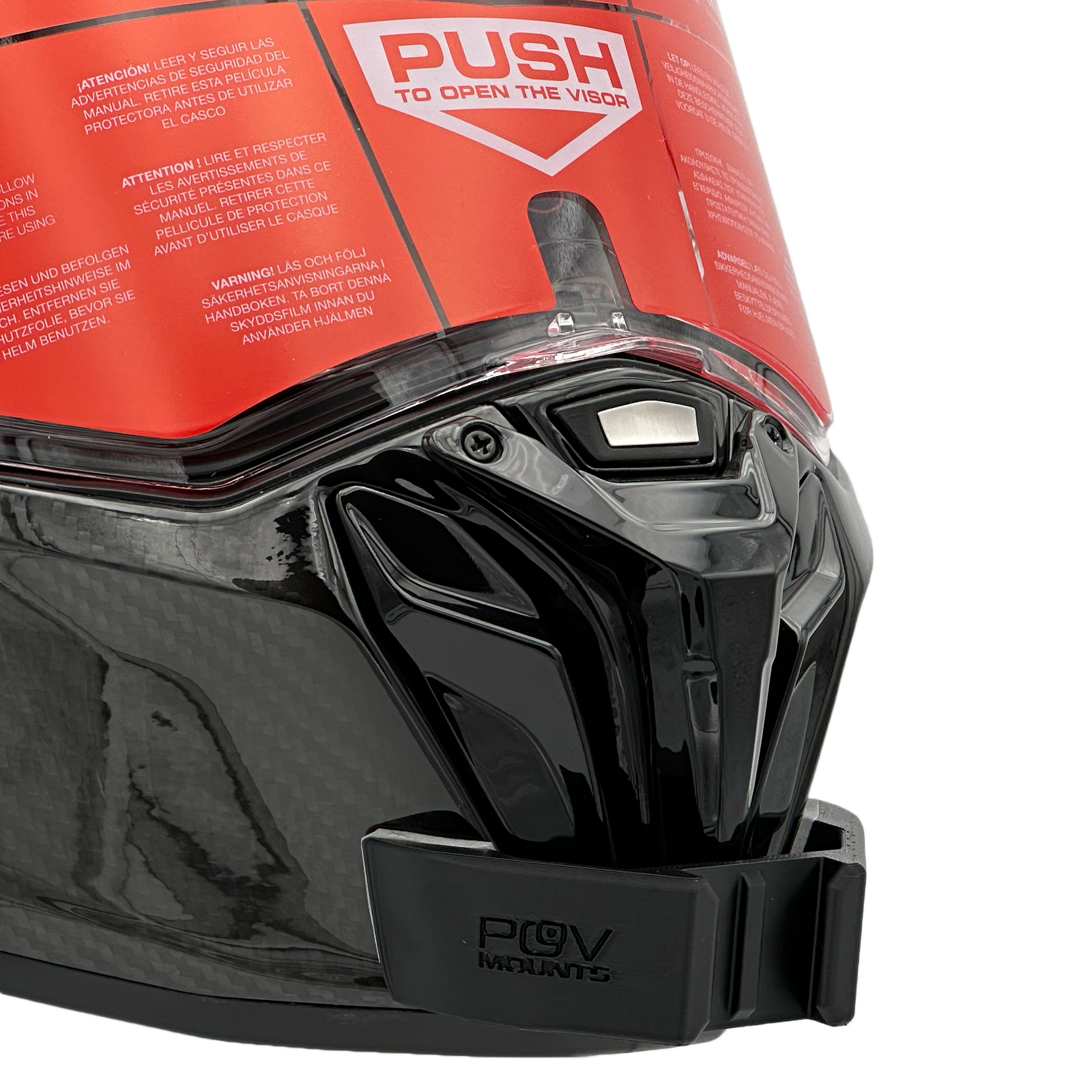 Inside the packaging you'll find your POV Mount, which naturally comes with 3M double-sided tape, the same type used on GoPro, Insta360, and similar accessories. The packaging also includes wipes to properly clean your helmet, along with a safety tether for track use where required by regulations.