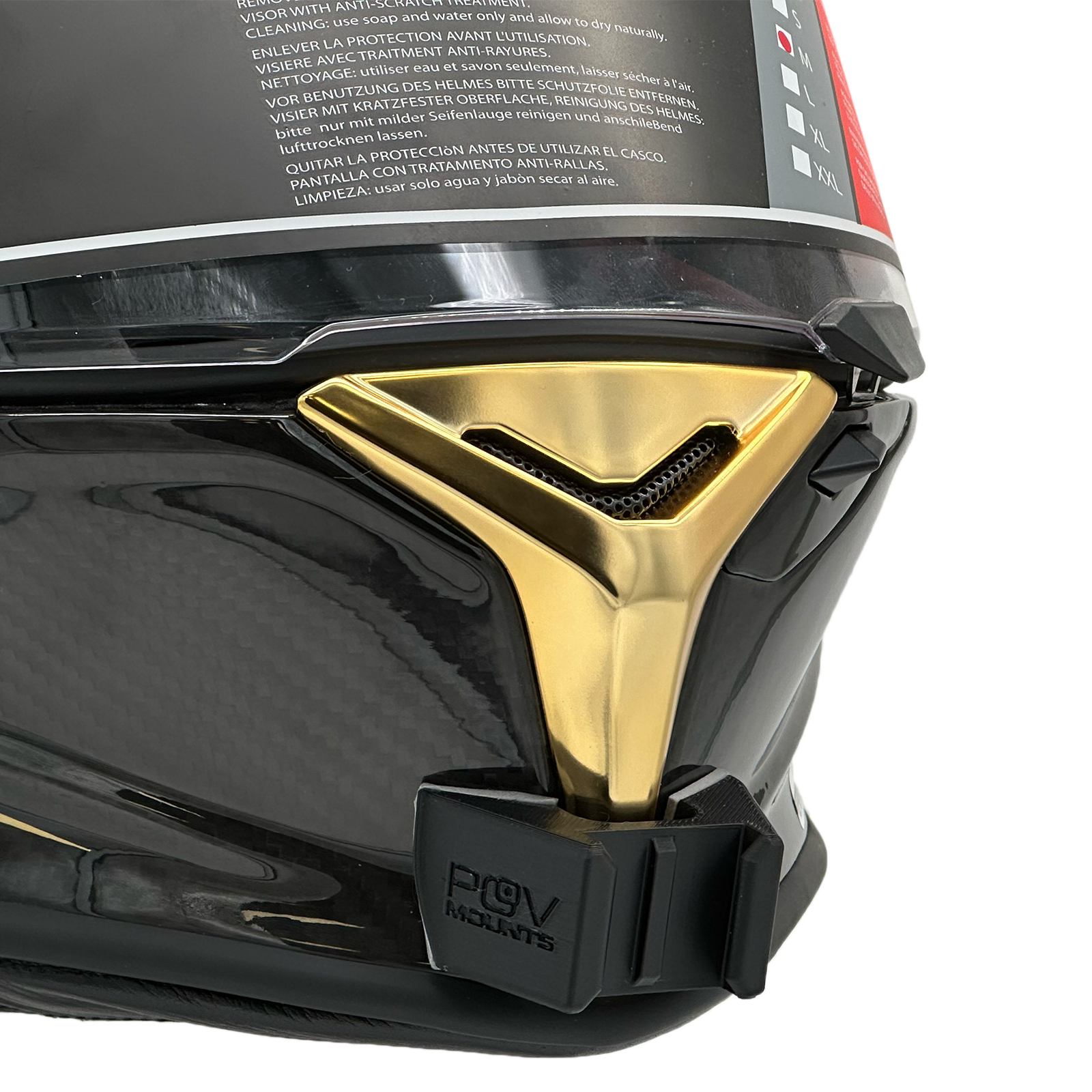 Inside the packaging you'll find your POV Mount, which naturally comes with 3M double-sided tape, the same type used on GoPro, Insta360, and similar accessories. The packaging also includes wipes to properly clean your helmet, along with a safety tether for track use where required by regulations.