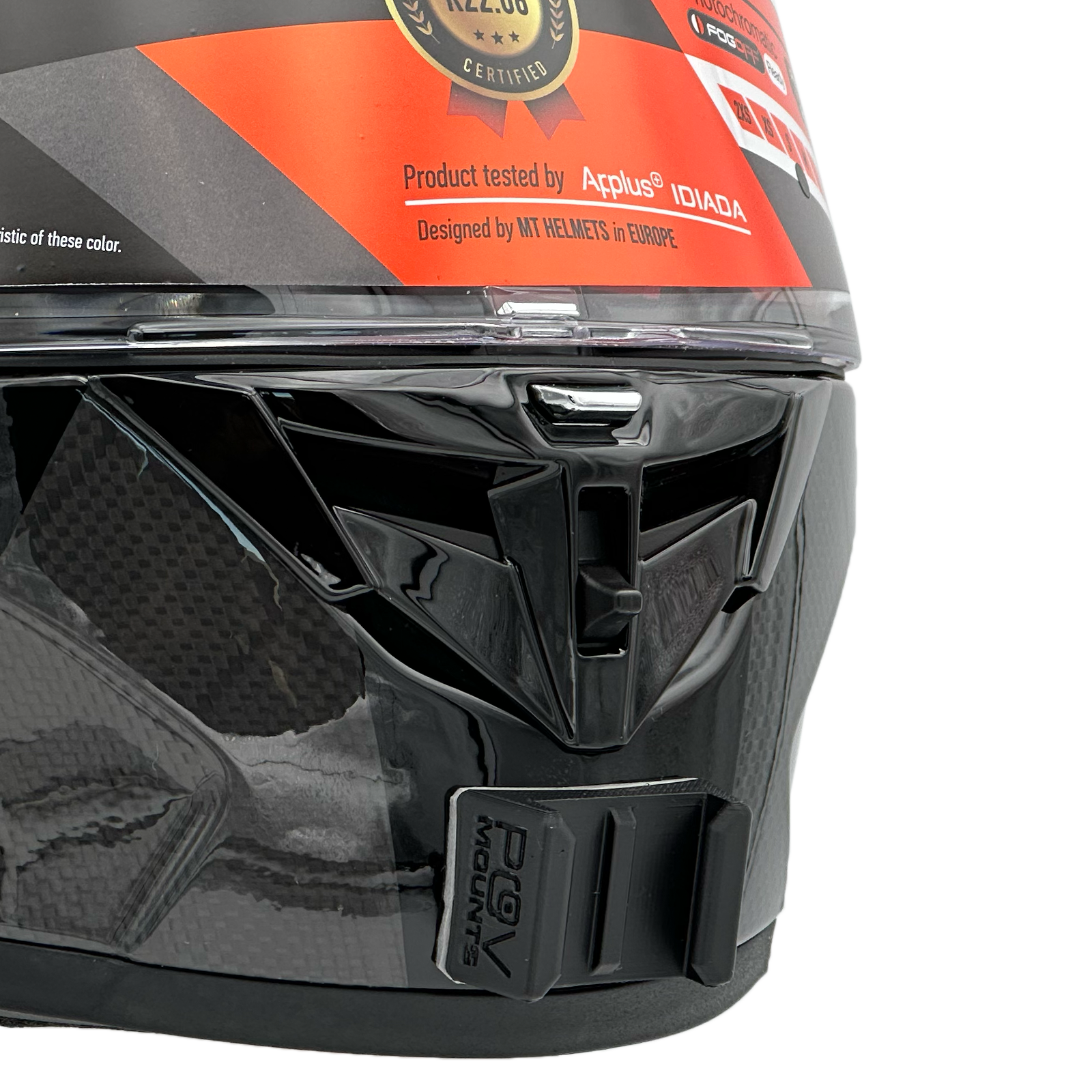 Inside the packaging you'll find your POV Mount, which naturally comes with 3M double-sided tape, the same type used on GoPro, Insta360, and similar accessories. The packaging also includes wipes to properly clean your helmet, along with a safety tether for track use where required by regulations.