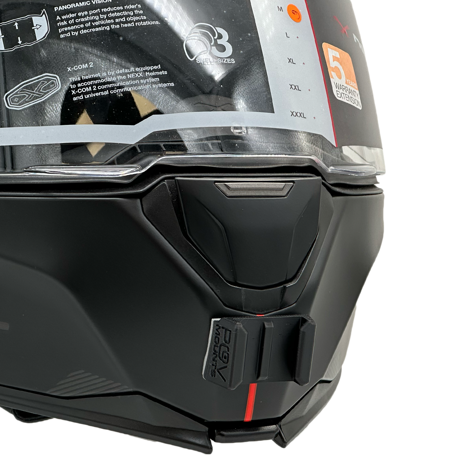 Inside the packaging you'll find your POV Mount, which naturally comes with 3M double-sided tape, the same type used on GoPro, Insta360, and similar accessories. The packaging also includes wipes to properly clean your helmet, along with a safety tether for track use where required by regulations.