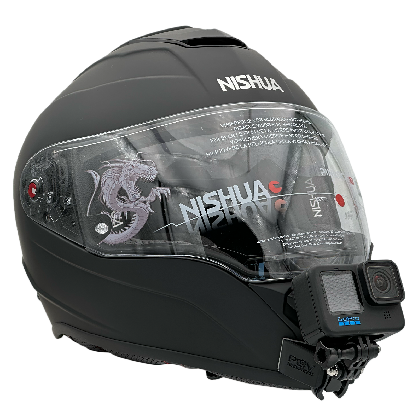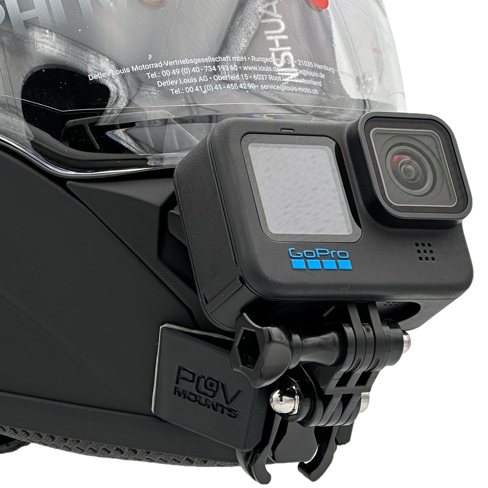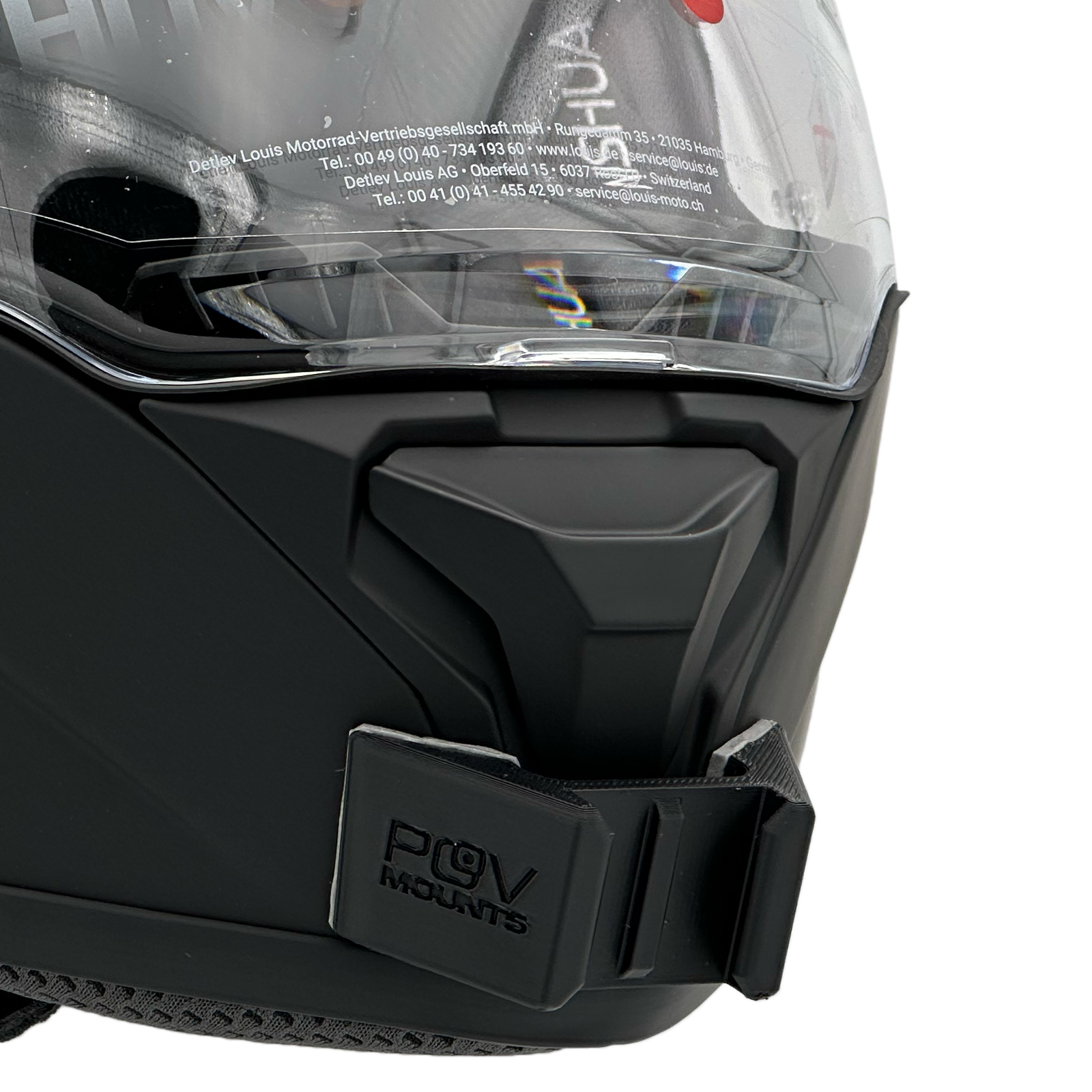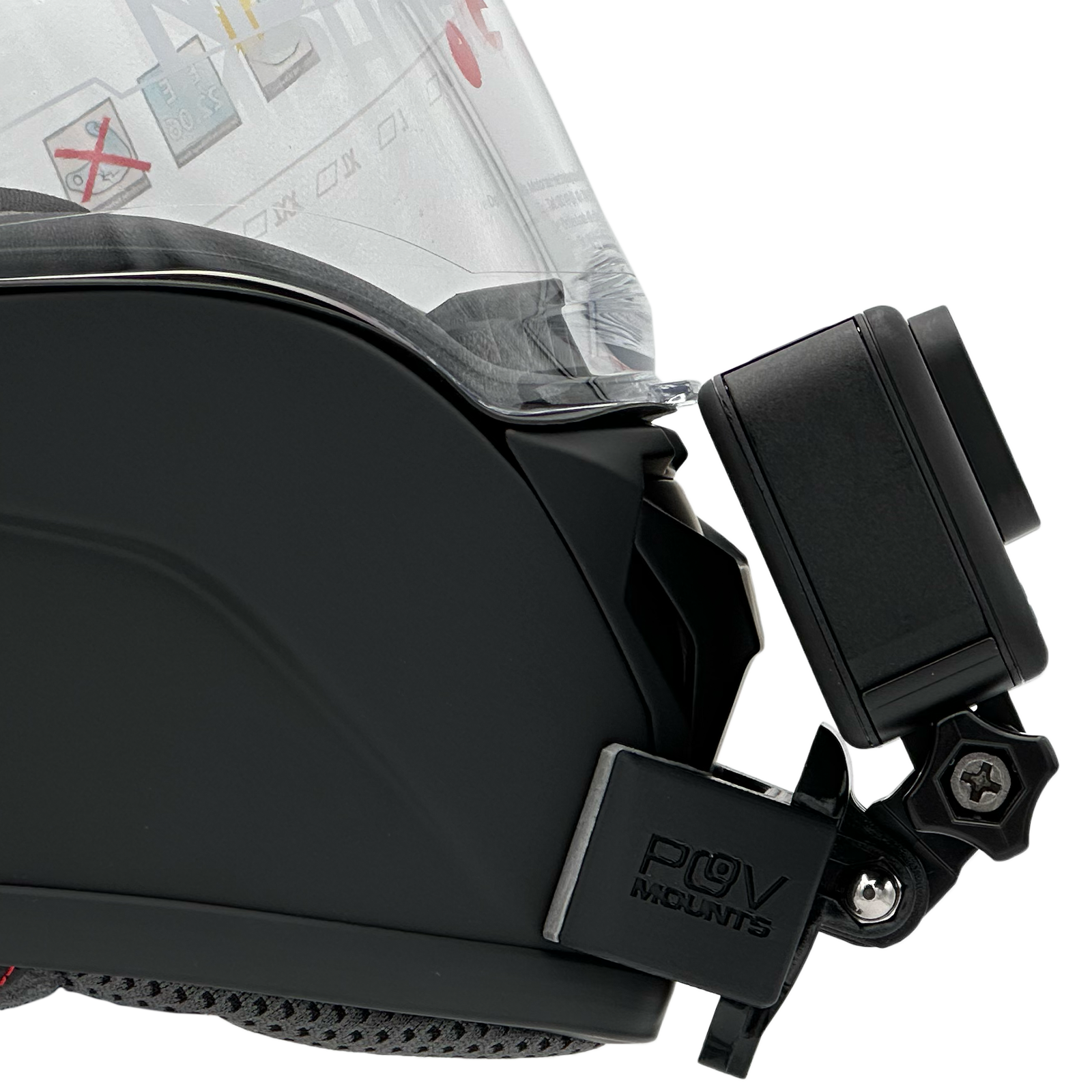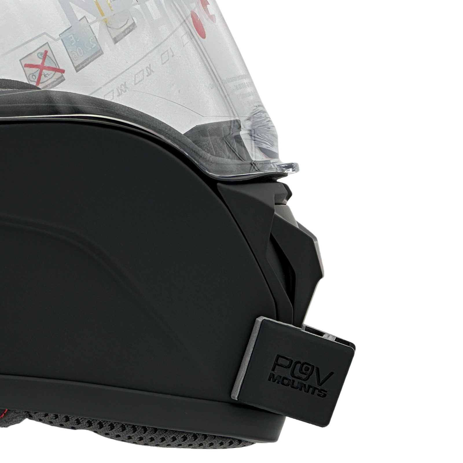 Inside the packaging you'll find your POV Mount, which naturally comes with 3M double-sided tape, the same type used on GoPro, Insta360, and similar accessories. The packaging also includes wipes to properly clean your helmet, along with a safety tether for track use where required by regulations.