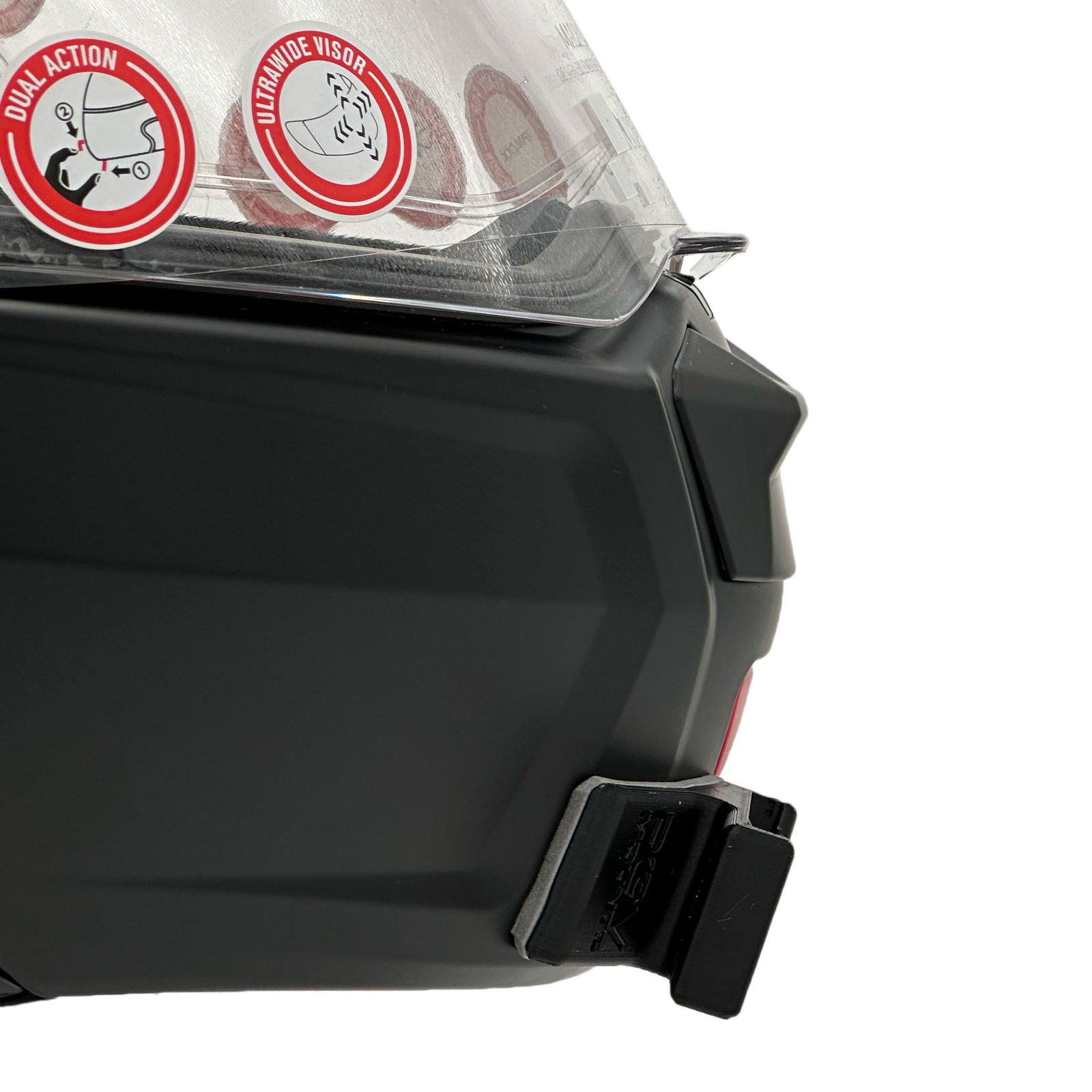 Inside the packaging you'll find your POV Mount, which naturally comes with 3M double-sided tape, the same type used on GoPro, Insta360, and similar accessories. The packaging also includes wipes to properly clean your helmet, along with a safety tether for track use where required by regulations.