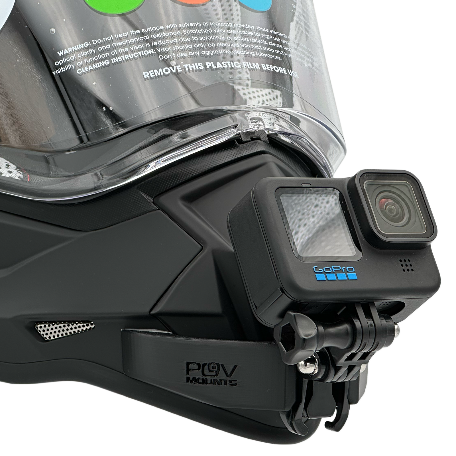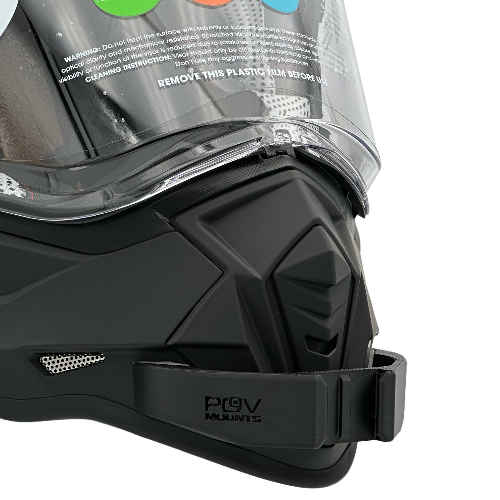 Inside the packaging you'll find your POV Mount, which naturally comes with 3M double-sided tape, the same type used on GoPro, Insta360, and similar accessories. The packaging also includes wipes to properly clean your helmet, along with a safety tether for track use where required by regulations.