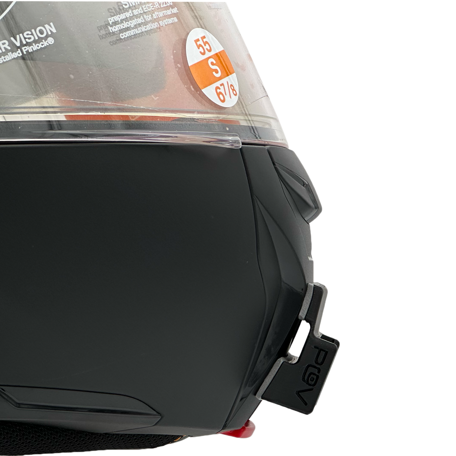 Inside the packaging you'll find your POV Mount, which naturally comes with 3M double-sided tape, the same type used on GoPro, Insta360, and similar accessories. The packaging also includes wipes to properly clean your helmet, along with a safety tether for track use where required by regulations.