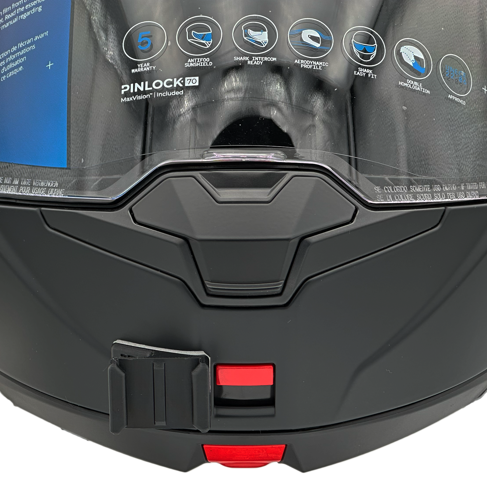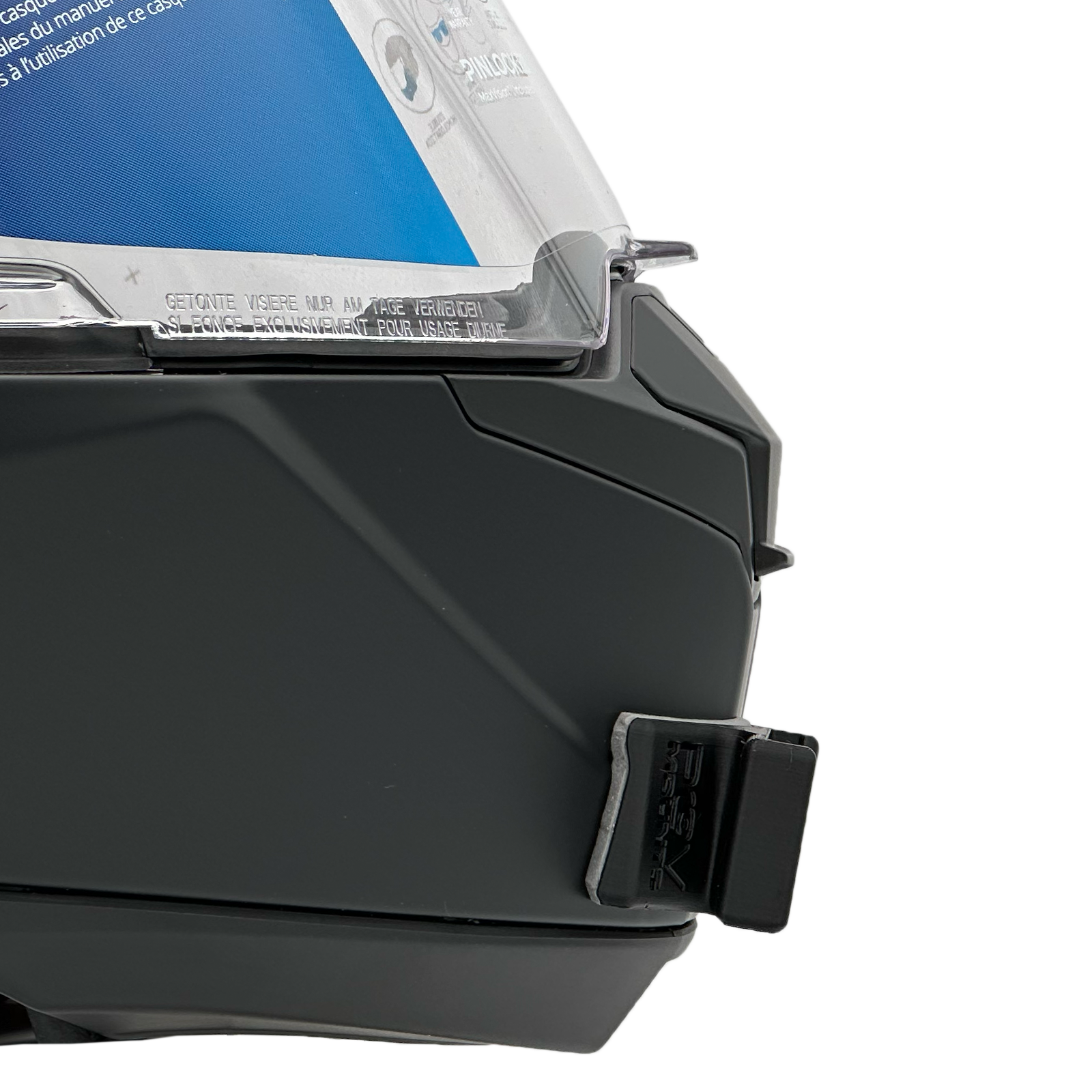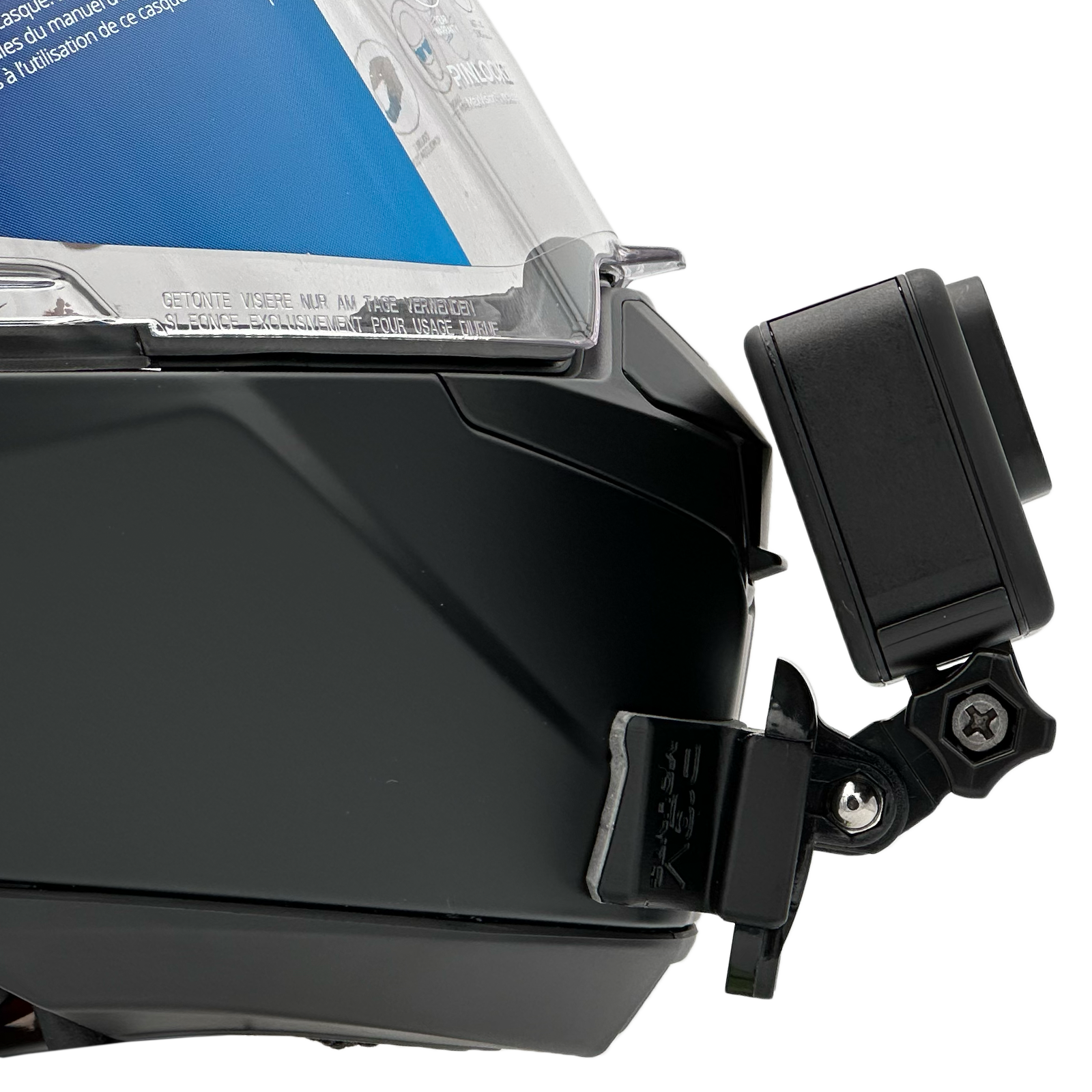 Inside the packaging you'll find your POV Mount, which naturally comes with 3M double-sided tape, the same type used on GoPro, Insta360, and similar accessories. The packaging also includes wipes to properly clean your helmet, along with a safety tether for track use where required by regulations.