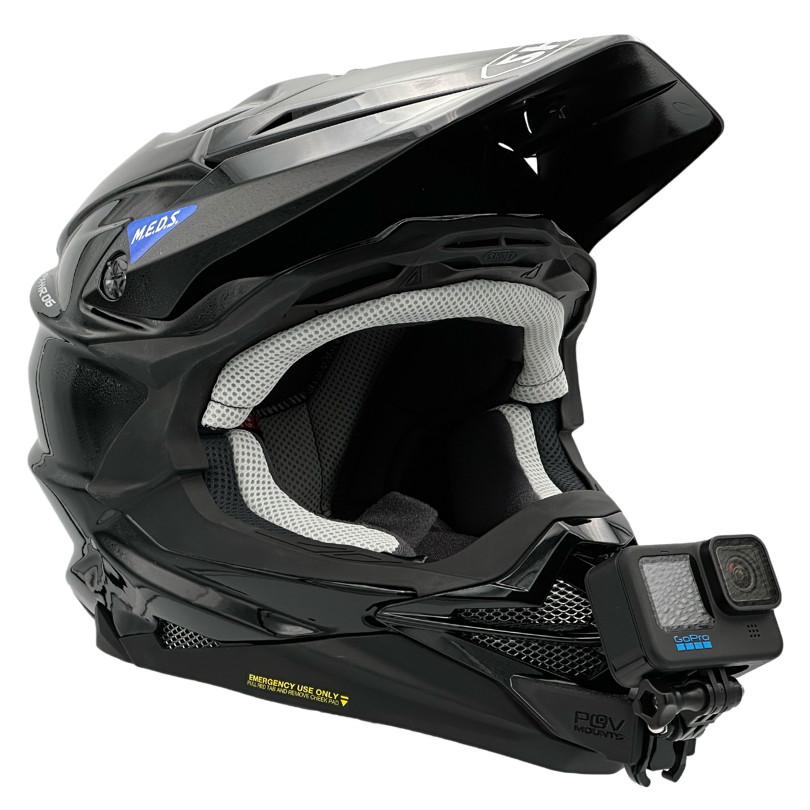 Inside the packaging you'll find your POV Mount, which naturally comes with 3M double-sided tape, the same type used on GoPro, Insta360, and similar accessories. The packaging also includes wipes to properly clean your helmet, along with a safety tether for track use where required by regulations.