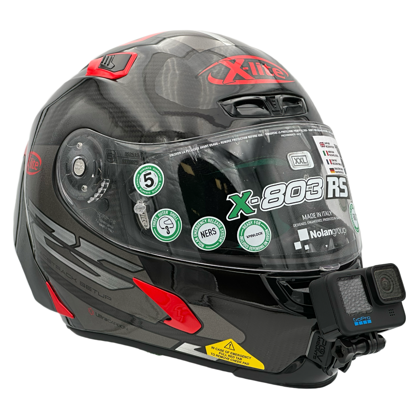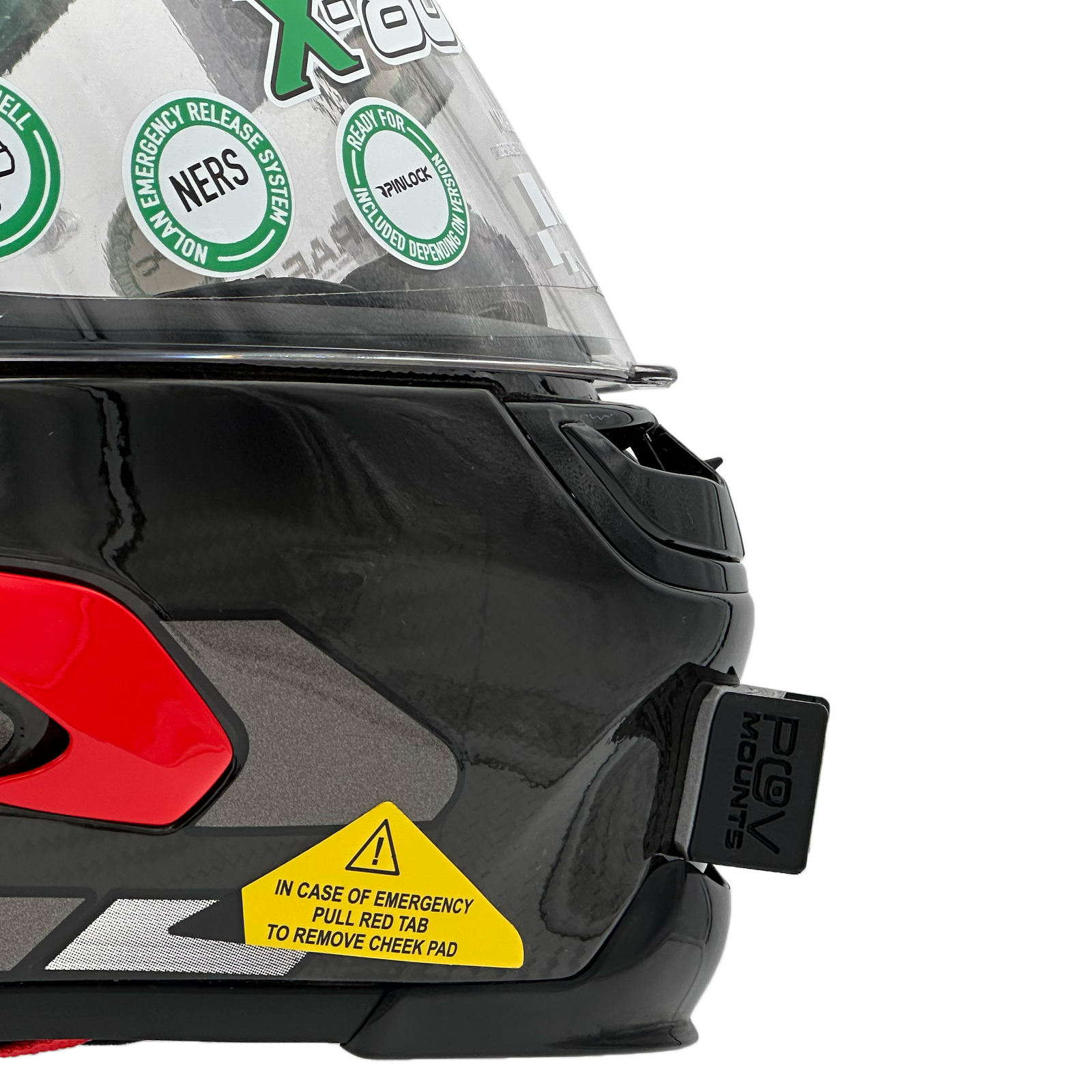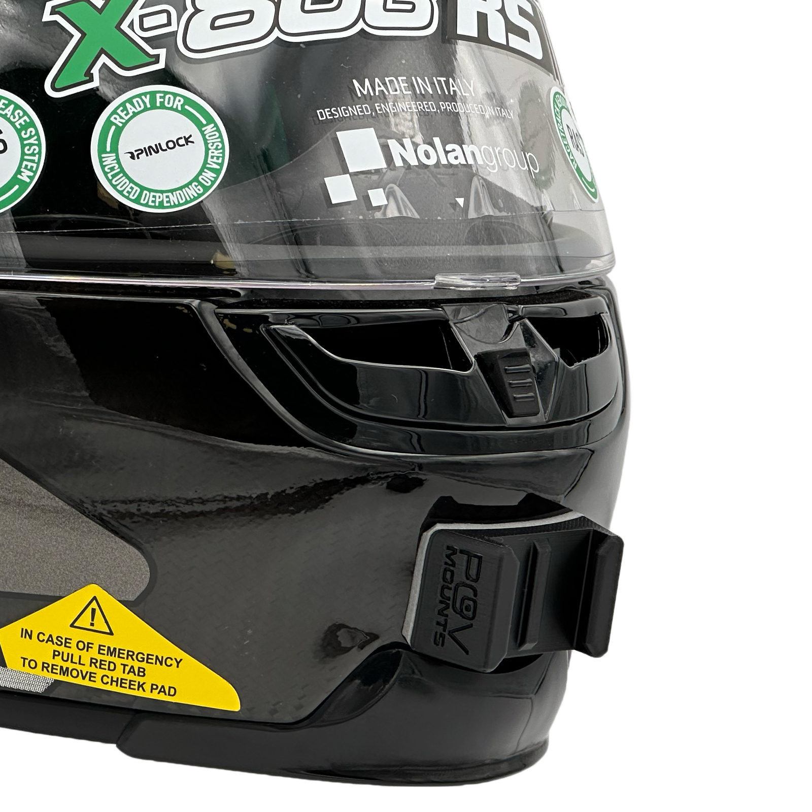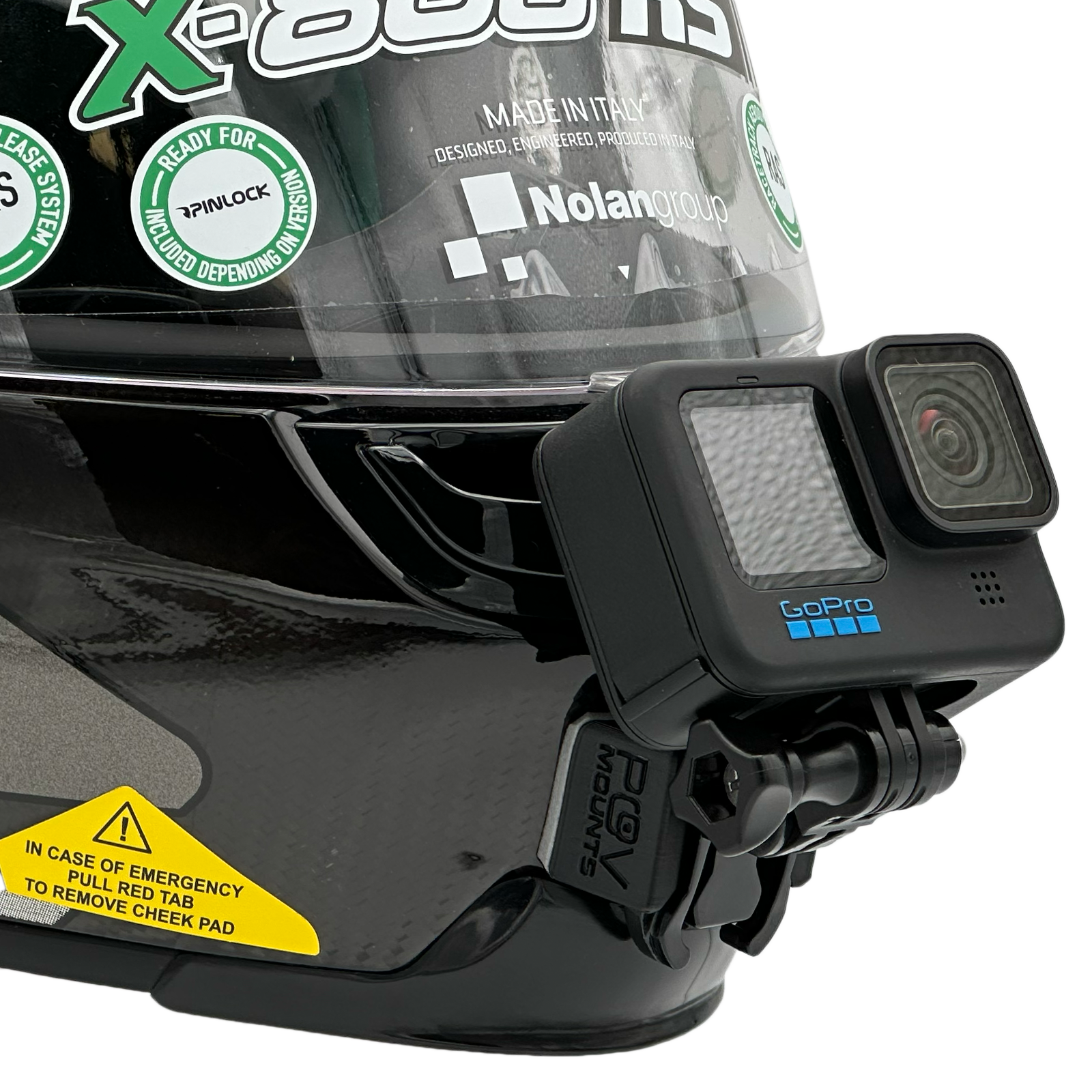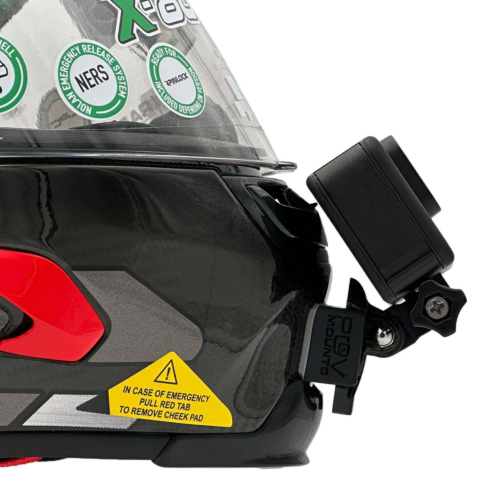 Inside the packaging you'll find your POV Mount, which naturally comes with 3M double-sided tape, the same type used on GoPro, Insta360, and similar accessories. The packaging also includes wipes to properly clean your helmet, along with a safety tether for track use where required by regulations.